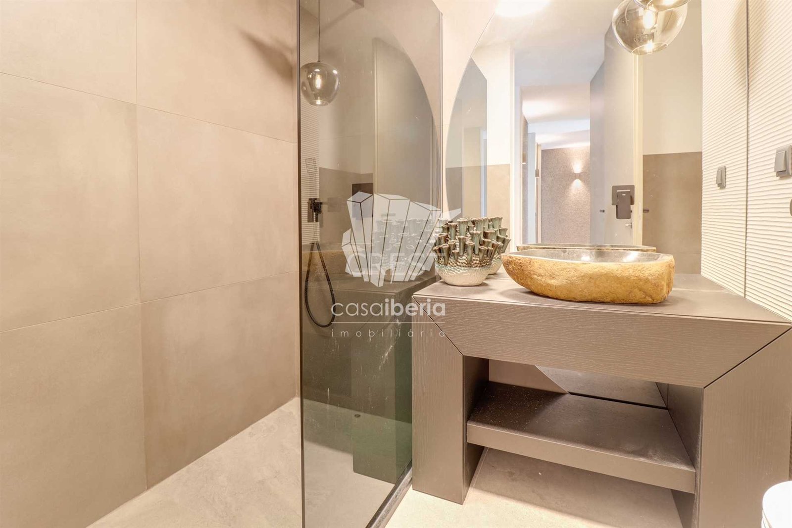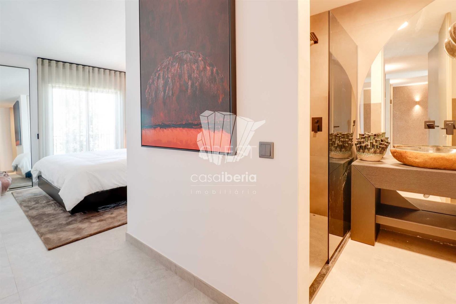 The social area, with the open-plan kitchen, was designed with comfort and functionality in mind, providing a perfect transition between the different spaces. The gas fireplace creates a cozy atmosphere and the wine cellar invites you to socialize with friends.