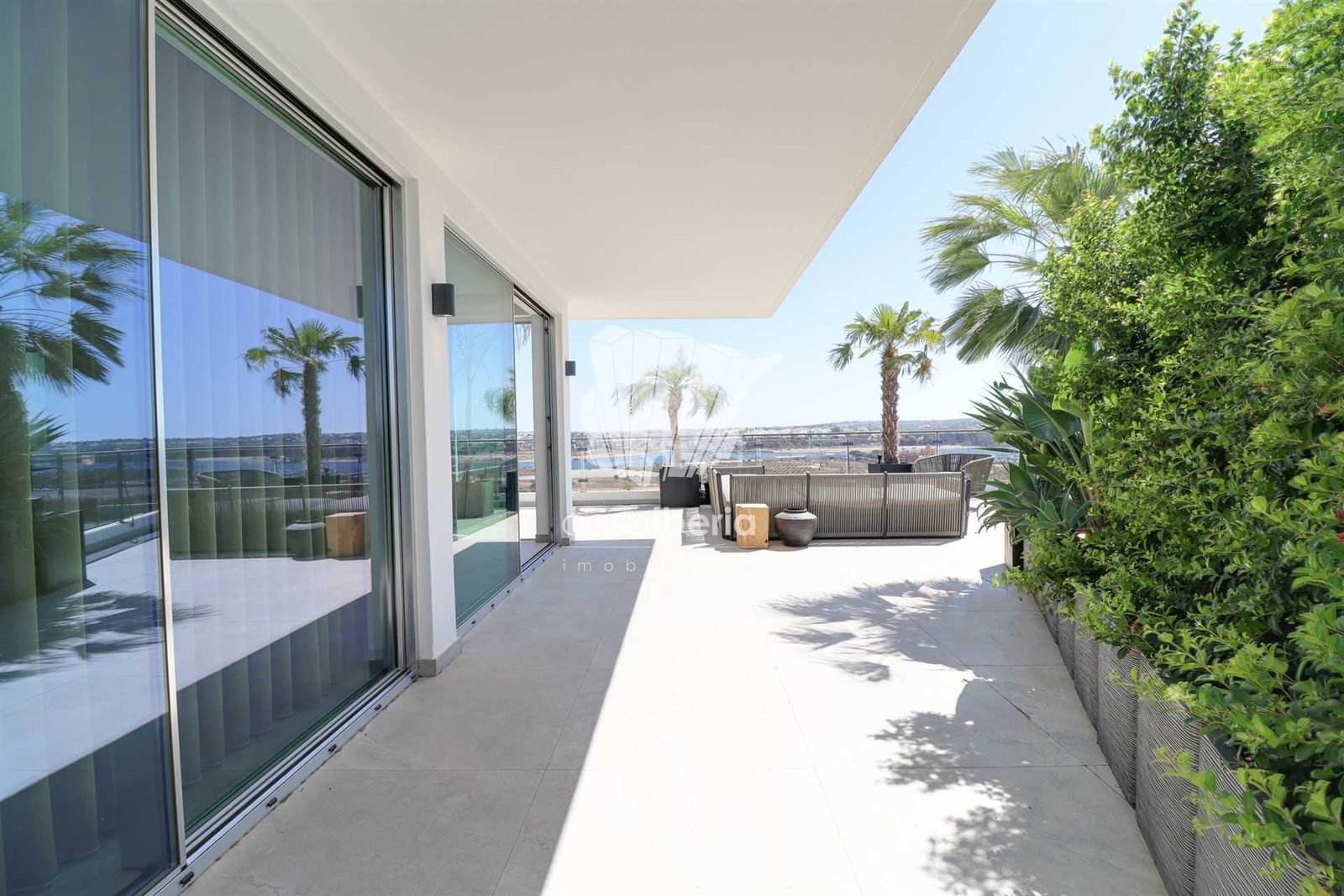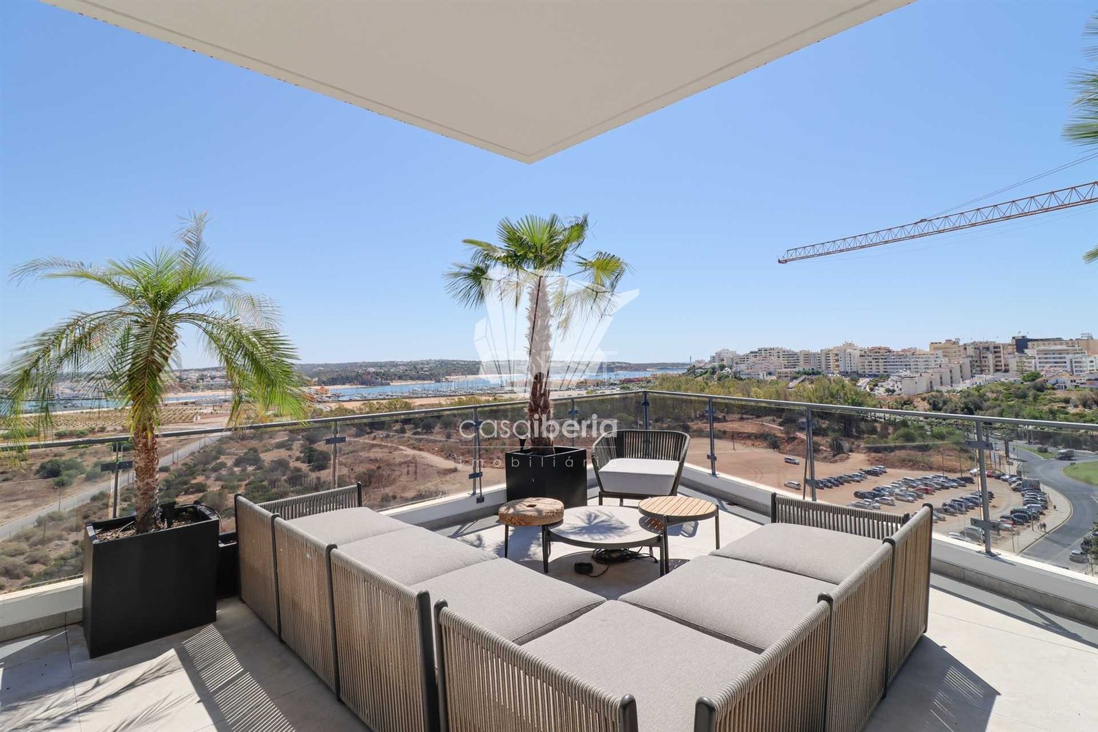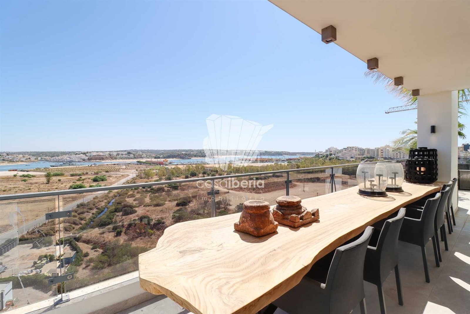 The large terraces around the entire apartment offer open views over the Portimão Marina, the river, and a little of the sea.