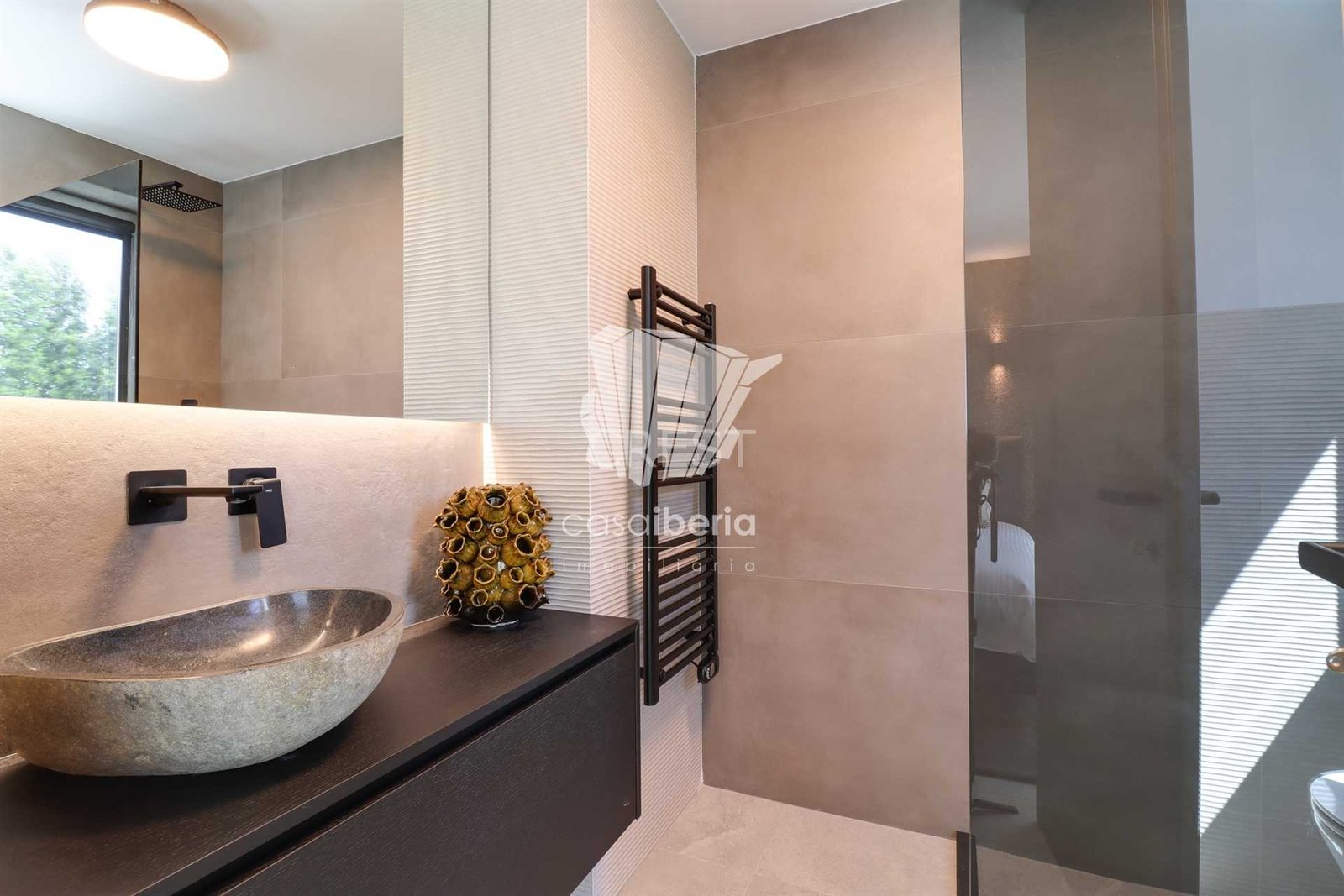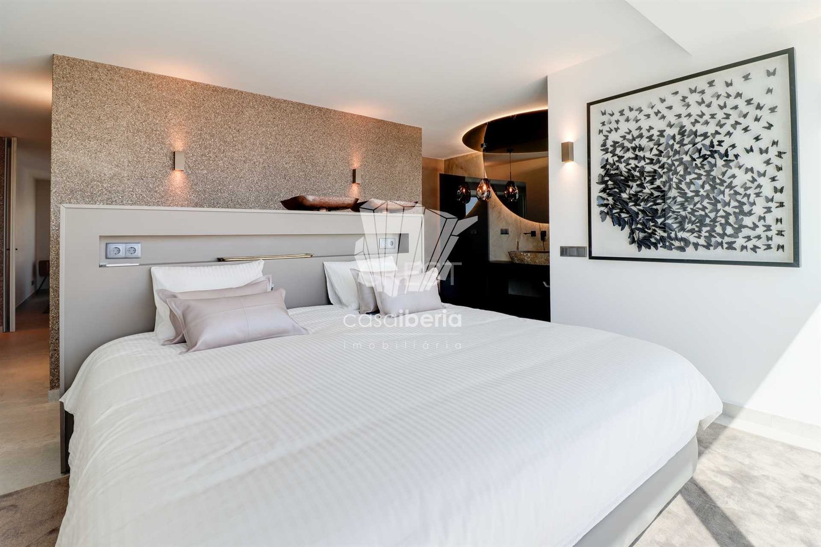 With 6 bedrooms, 4 of which are ensuite, it has built-in wardrobes, lined with wood, and the master suite has interior lighting.