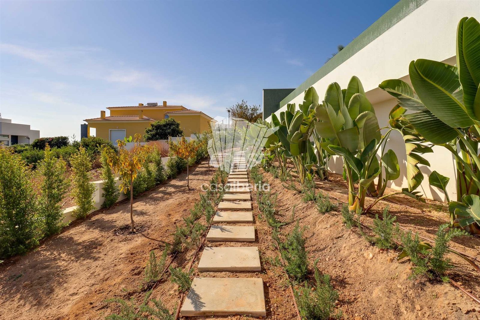 The garden was created with low-maintenance plants, several tree trees and other plants with automatic irrigation. At the bottom of the garden, several fruit trees were planted, so that fruit can be found at all times of the year.