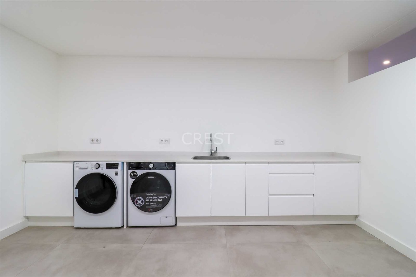 Garage with capacity for three vehicles, laundry room, technical area, additional bathroom, and a 120 m² area with potential for a cinema room, gym, or spa with pre-installation for a sauna and jacuzzi.