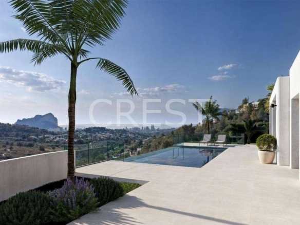 This modern villa in Calpe offers an exceptional lifestyle with breathtaking sea views, set within one of the area’s most prestigious urbanisations. Positioned on a southwest-facing plot, the property enjoys spectacular panoramic views over the Peñón de Ifach and the stunning Calpe coastline.