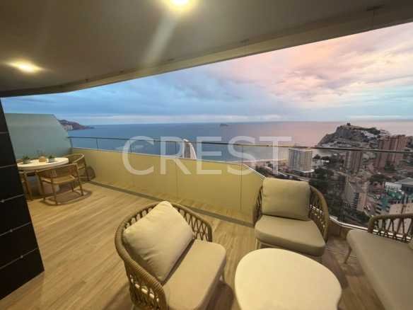 Apartment with 2 and 3 bedrooms, 2 bathrooms perfectly furnished and equipped, spacious terraces with panoramic views of the beach and the sea, open plan kitchen with furniture, induction hob, extractor hood, oven and microwave.