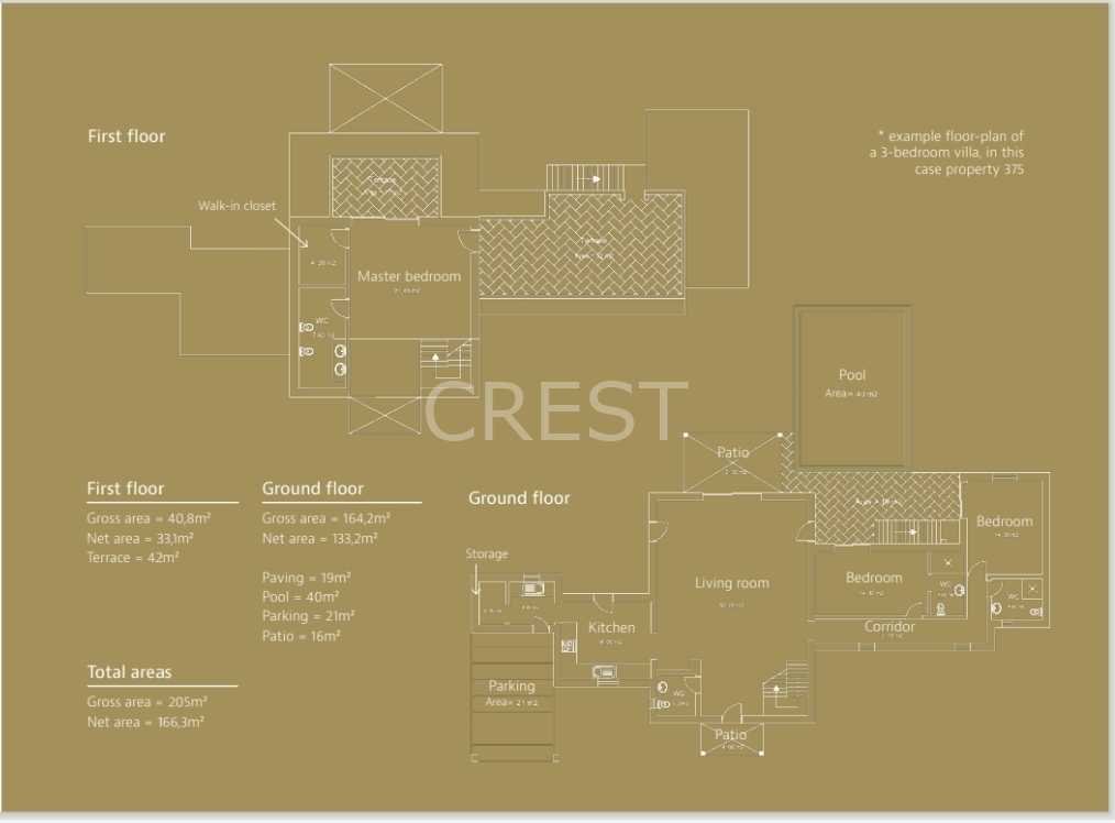 On the ground floor, you will find two en-suite bedrooms, both with direct access to the garden and pool area, offering a perfect balance between comfort and privacy.
