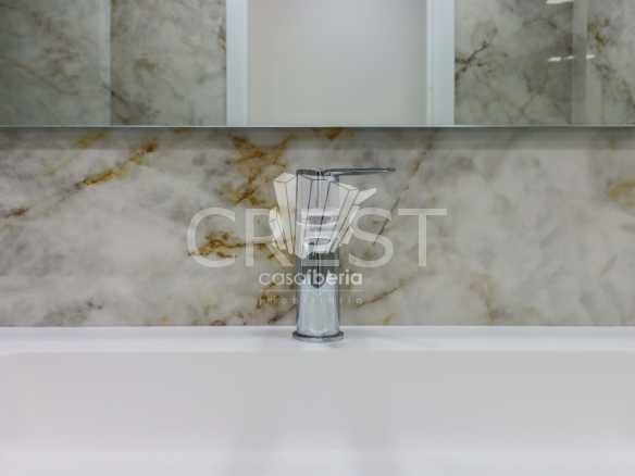 It comprises 3 bedrooms, one of them in suite, a fully equipped open space kitchen and living room that leads to a balcony with views over the city.