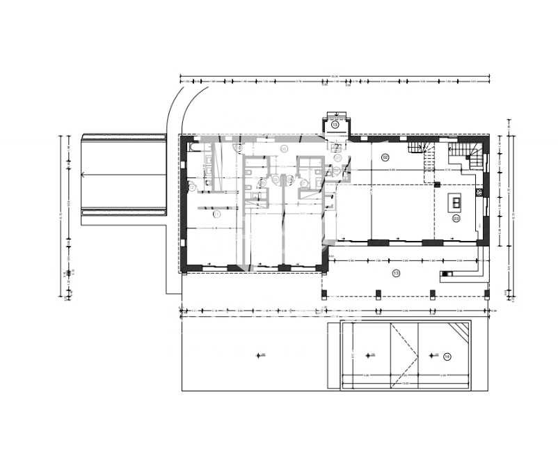 The villa´s basement offers a large garage ( 6-8 cars), a laundry room, a storage area and 3 technical areas.