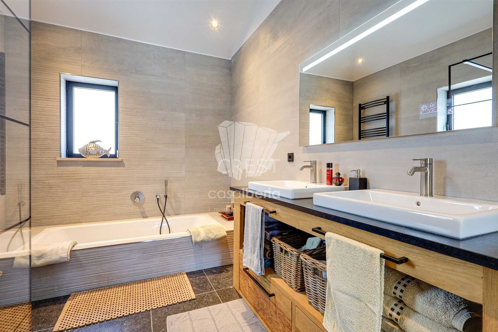 It is also important to note that this is a “passive” house, which respects the environment thanks to the installation of photovoltaic and solar panels, which reduce energy consumption and guarantee an ideal temperature in all seasons.